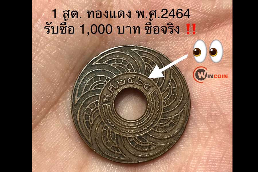 รับซื้อเหรียญเก่า  เหรียญ 1 สตางค์ ทองแดง พ.ศ.2464