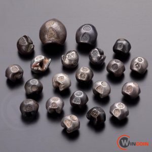 อาณาจักรฟูนันเป็นอาณาจักรที่มีความรุ่งเรืองทางการค้าขายและมีอำนาจในระหว่างพุทธศตวรรษที่ 6 – 11 อาณาจักรฟูนันได้รับเอาวัฒนธรรมมาจากอินเดียที่เด่นชัด ได้แก่ การปกครองในระบอบกษัตริย์ และศาสนาพราหมณ์ ทำให้เงินตราที่ชาวฟูนันใช้ในการค้าขาย มีสัญลักษณ์เกี่ยวกับกษัตริย์ การปกครองและศาสนา มีลักษณะเป็นเหรียญกลมแบน ส่วนใหญ่ทำด้วยโลหะเงิน ลวดลายของเหรียญที่พบด้านหนึ่งเป็นรูปพระอาทิตย์ครึ่งดวงแผ่รัศมี มีจุดไข่ปลาเรียง 2 แถว อีกด้านมีสัญลักษณ์ศรีวัตสะ ซึ่งเป็นสัญลักษณ์ของพระนารายณ์อยู่ตรงกลาง ข้างหนึ่งของศรีวัตสะเป็นบัณเฑาะว์ หมายถึง กลองเล็กชนิดหนึ่งที่พราหมณ์ใช้ในพิธีต่าง ๆ อีกข้างหนึ่งเป็นเครื่องหมายสวัสดิกะ ส่วนบนสุดของเหรียญเป็นรูปดวงอาทิตย์และดวงจันทร์ ลวดลายที่ปรากฏบนเหรียญแสดงให้เห็นถึงคติความเชื่อทางศาสนาพราหมณ์ของชาวอินเดียโบราณ