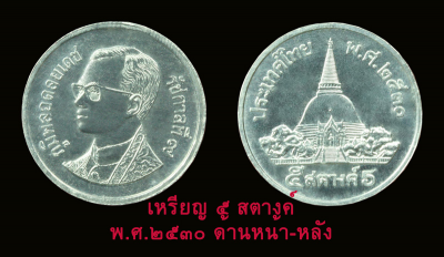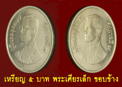 เหรียญนี้คงต้องคุยกันนานเพราะมันเป็นตำนานจริงๆ มีเพียงหนึ่งเดียวและที่เห็นมามีเพียงเหรียญเดียวยังไม่เคยเห็นเหรียญที่สองเลยครับ ย้อนกลับไปเมื่อปี 2539 ก่อนฟองสบู่แตกเล็กน้อยตอนนั้นถือเป็นยุคทองของเหรียญกษาปณ์เพราะมีคนเล่นหากันแบบไม่เกรงใจคนจน คงเป็นเพราะเศรษฐกิจดีขนาดไม่มีเงินหรือเงินไม่พอยังสามารถแปะเอาไว้ก่อน เอาของมาก่อนแล้วค่อยหาเงินไปใช้ให้ทีหลังทำตัวเป็นเศรษฐีกันถ้วนหน้าผมเองไม่ถึงขนาดนั้นแต่ก็อดที่จะตามขบวนกับเขาไม่ได้กลัวจะตกรถไฟ ขณะที่ผมกำลังก้มๆเงยๆมองหาเหรียญอยู่แถวหน้าวัดพระแก้วก็มีมือมาสะกิดทำให้ผมหันไป “พี่ๆผมมีเหรียญมาให้ดู”ผมหันไปก็ไม่ใช่ใครอื่นไกลเป็นนักวิ่งเหรียญ(ไม่รู้จะเรียกว่าอะไรดีประมาณว่าเป็นคนหาเหรียญแล้วคอยส่งต่อให้พ่อค้าอีกที) เจ้าประจำที่คุ้นเคยกันอยู่ “เหรียญอะไร” ผมถามอย่างอารมณ์ดี “เหรียญหายากครับ ผมว่าพี่ต้องชอบ” ผมไม่รอช้าเลี่ยงเดินออกมาโดยมีเจ้านักวิ่งเหรียญตามมาติดๆ “ไหนขอดูหน่อยว่าเจ๋งจริงหรือเปล่า”เจ้านักวิ่งเหรียญเปิดกระเป๋าย่ามบรรจงหยิบเหรียญออกมายื่นให้“เจ๋งอยู่แล้วพี่ ดูซะก่อน” ผมรับเหรียญมาแล้วมองดูพลิกไปพลิกมาก็ยังไม่แน่ใจเลยควักกล้องออกมาส่องอยู่สักครู่แล้วก็ถามว่า “เท่าไหร่” เจ้าเด็กวิ่งเหรียญตอบแบบไม่เกรงใจผม “ห้าหมื่นครับพี่”ผมนิ่งไปพักใหญ่เพราะเจอของหนักอีกแล้ว “มีเหรียญเดียวหรือ”ผมถามเพื่อหยั่งเชิง “โอย..พี่มีเหรียญเดียวจะไปหาที่ไหนตั้งหลายๆเหรียญ นี่มัน พ.ศ. 39 แล้วตั้ง 14 ปีมาแล้วนะยังไม่เคยเห็นแบบนี้มาก่อน ผมได้มาจากคนคัดเหรียญของกองกษาปณ์ อ้ายคนคัดเหรียญมันยังบอกว่ามันเองก็ไม่เคยเห็นเหรียญแบบนี้มาก่อน” ผมเองก็มั่นใจลึกๆว่าเจ้าเด็กวิ่งเหรียญน่าจะพูดจริงเพราะเวลาผ่านมานานแล้วผมเองก็ยังไม่เคยรู้มาก่อนว่ามันมีเหรียญแบบนี้ ที่เคยเห็นบ่อยก็จะเป็นเหรียญราคา 1บาทแบบพระเศียรเล็กแต่ราคา 5 บาทแบบพระเศียรเล็กยังไม่เคยเจอเลย “ไม่ลดหน่อยหรือ เช้าๆอย่างนี้” เจ้านักวิ่งเหรียญตอบแบบรู้ใจว่าผมสนใจสินค้า “อย่าเลยพี่แบ่งๆกัน พี่ก็รู้ว่าผมให้พี่ดูเป็นคนแรกๆทุกครั้งเลย”เจอไม้นี้ผมเลยพูดไม่ออกเดินไปกดเงินให้แล้วเดินตัวเบาออกมา ดีใจก็ดีใจที่ได้ของหายาก แต่ติดใจตรงที่จะมีเหรียญที่สองให้เห็นอีกหรือเปล่า เหรียญหายากที่สุดที่โพสท์มาให้ดูจริงๆแล้วแทบจะไม่มีใครได้เคยเห็นมาก่อนเลยเพราะไม่เคยเอาไปโชว์ที่ไหนและคิดว่าคงแทบจะไม่มีใครเคยรู้ด้วยซ้ำว่ามีเหรียญแบบนี้ สภาพของเหรียญเป็นเหรียญที