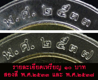 เหรียญหายากอันดับ 2 – เหรียญกษาปณ์สองสีราคา ๑๐ บาท พ.ศ. ๒๕๓๓