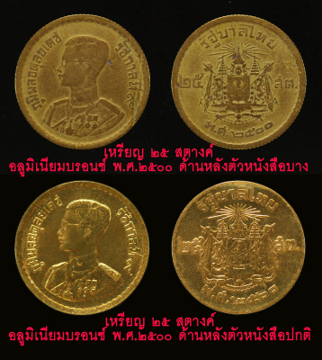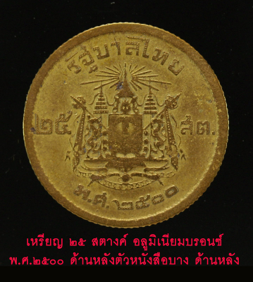 เหรียญหายากอันดับ 3 – เหรียญกษาปณ์อลูมิเนียมบรอนซ์ราคา ๒๕ สต.พ.ศ.๒๕๐๐ ด้านหลังตัวหนังสือบาง
