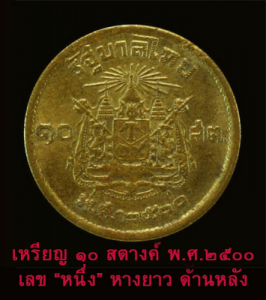 เหรียญหายากอันดับ 4 – เหรียญกษาปณ์อลูมิเนียมบรอนซ์ราคา ๑๐ สต. พ.ศ.๒๕๐๐ ด้านหลังสิบสตางค์หางยาว