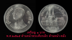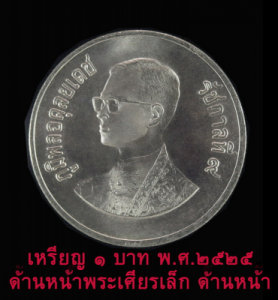 เหรียญหายากอันดับ 5 – เหรียญกษาปณ์นิกเกิลราคา ๑ บาท พ.ศ.๒๕๒๕ ด้านหน้าพระเศียรเล็ก