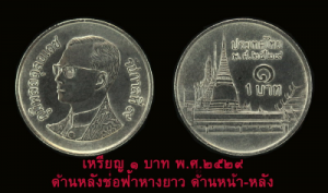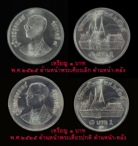 เป็นเหรียญบาทปีแรกที่มีขนาดเล็ก มีจำนวนผลิตโดยรวมไม่มากแค่ 4,200,000 เหรียญซึ่งถือว่าน้อยเมื่อเทียบกับเหรียญแบบเดียวกันในปีอื่นๆ ทีแรกๆก็ไม่มีใครสังเกตหรอกครับว่าบล็อกด้านหลังมีความต่างกันตรงช่อฟ้าบนหลังคาโบสถ์วัดพระแก้วบริเวณด้านขวาของเหรียญซึ่งมีช่อฟ้าที่ยาวและสั้นต่างกัน จำนวนเกือบทั้งหมดของเหรียญรุ่นนี้เป็นช่อฟ้าแบบหางสั้น ที่เป็นแบบหางยาวมีน้อยกว่ามากๆๆๆโดยผสมปนเปกันอยู่ในถุงที่ให้จ่ายแลกและเหรียญพบและเก็บหากันก็มักจะเป็นเหรียญที่ใช้แล้วหาประเภทใหม่เอี่ยม (UNC)ได้ยาก จัดเป็นเหรียญหายากครับ