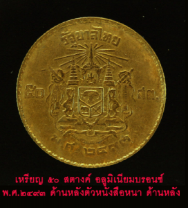 เหรียญหายากอันดับ 6 – เหรียญกษาปณ์อลูมิเนียมบรอนซ์ราคา ๕๐ สต. พ.ศ.๒๔๙๓