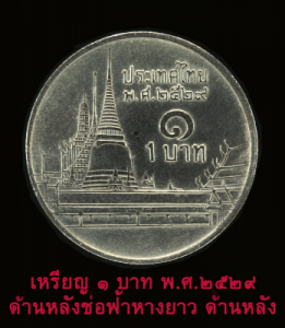 เหรียญหายากอันดับ8 – เหรียญกษาปณ์นิกเกิลราคา ๑ บาท พ.ศ.๒๕๒๙ ด้านหลังช่อฟ้าหางยาว