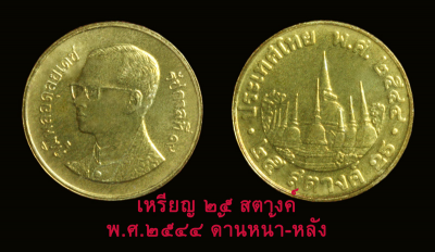 เหรียญหายากอันดับ 10.3 เหรียญกษาปณ์อลูมิเนียมบรอนซ์ราคา ๒๕ สต. พ.ศ.๒๕๔๔